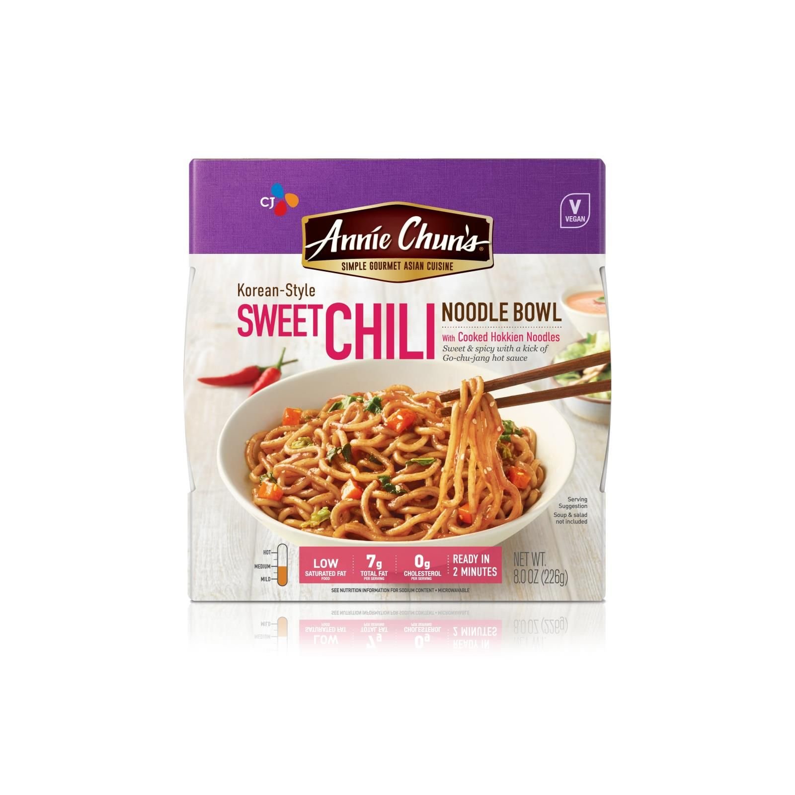 Annie chun's noodle bowls are the perfect way to enjoy your favorite asian dishes at home or on the go. Our carefully crafted recipe combines our hot and sweet gochujang sauce and cooked hokkien noodles with carrots and bok choy to make this a complete meal. Gochujang is a korean specialty of cultured hot peppers artfully blended with onion and sesame for a delightful melange of savory, spicy and sweet flavors. Works great as a quick lunch or anytime you have a craving. Ready to eat in 2 minutes. Contains one 8 oz. Bowl. At annie chun's we believe in delicious, easy-to-prepare, asian-inspired dishes that you can feel good about. Whether you want to whip up a quick pad thai for the family, grab lunch at the office or enjoy a delicious snack on the go, we have a full range of asian-inspired options. It has never been easier to enjoy the flavors of your favorite asian cuisines in the comfort of your own home.